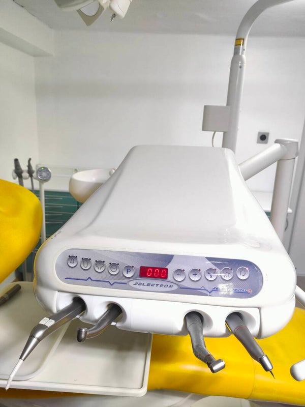 Fauteuil dentaire select dental SELECTRON année 2013 très bonne état révisé fonctionne parfaitement. Deux micros moteurs avec deux contre angle. Une turbine. Une seringue multifonction . Fourni aussi avec pièce à main détartreur a placé a la place du turbine . Scialytique Faro LED . possibilité de fournir avec radio dentaire a monté sur la colonne scialytique. Pour un supplément de 600€ . Possibilité de livrer et installer devis installation et livraison sur demande.